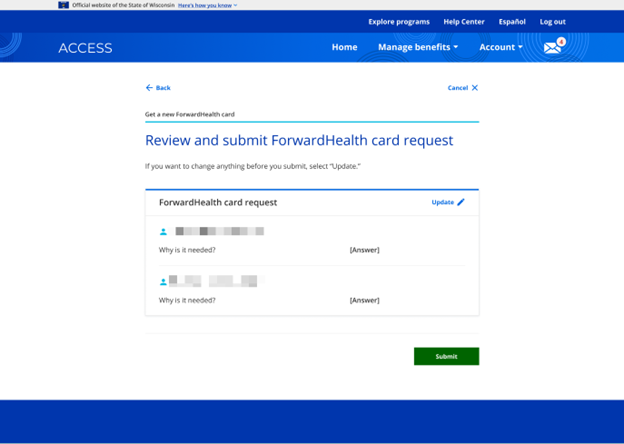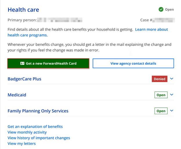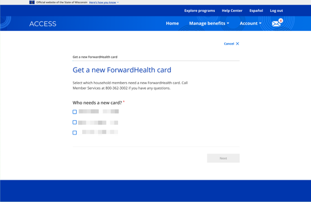To request a new ForwardHealth or SeniorCare card:
