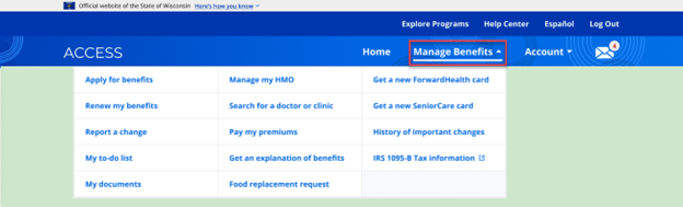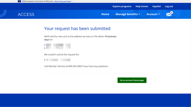 | Note | The link for Food Benefits Replacement Request is only available to members that are either current FoodShare recipients or whose benefits have been recently closed or who received Summer EBT. |
