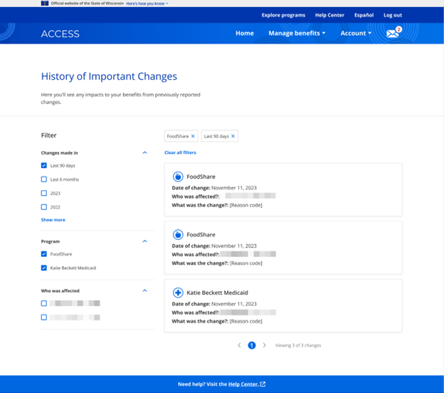 Members who report changes through ACCESS don’t also need to contact their agency to report the change. It may take up to 10 days for the reported change to be processed, and, in some cases, the change may not result in a change in benefits.