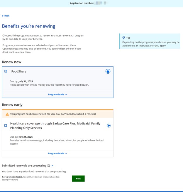 For more information about renewing benefits, see SECTION 8.1 RENEW MY BENEFITS INTRODUCTION.