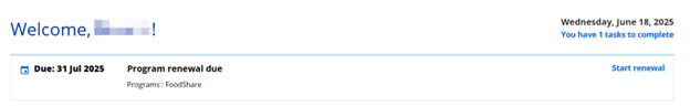 This page shows the programs for which a member can renew benefits and the date the renewals are due.