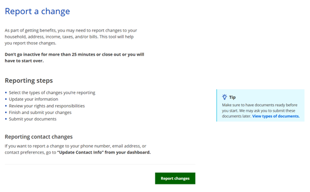For more information about reporting changes, see CHAPTER 7 REPORT A CHANGE.