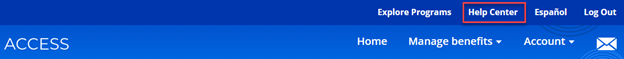 For help on any page, the member can select the Help Center icon at the top right corner of that page.