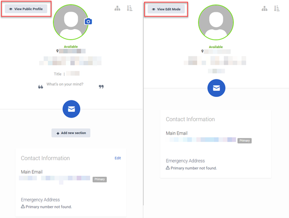 Profiles show users’ contact information, status, location, and more. The following information can be updated: