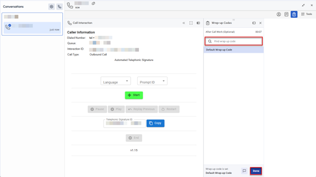 The after call activities timer starts when the call ends. After entering a wrap-up code, if required by the Income Maintenance (IM) agency, and completing any after call work, click Done. This stops the after call timer.