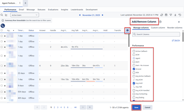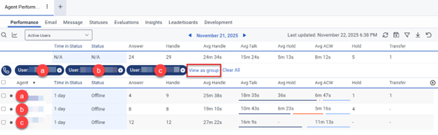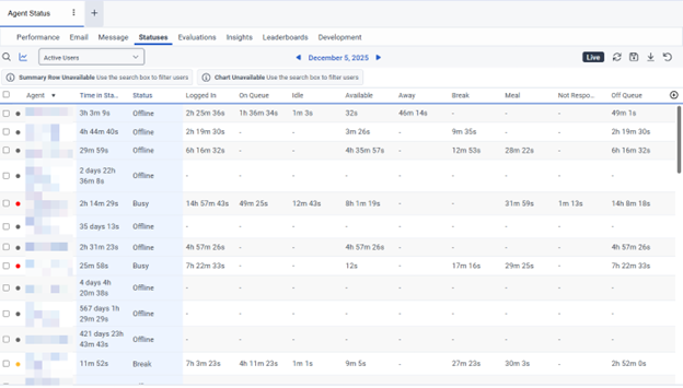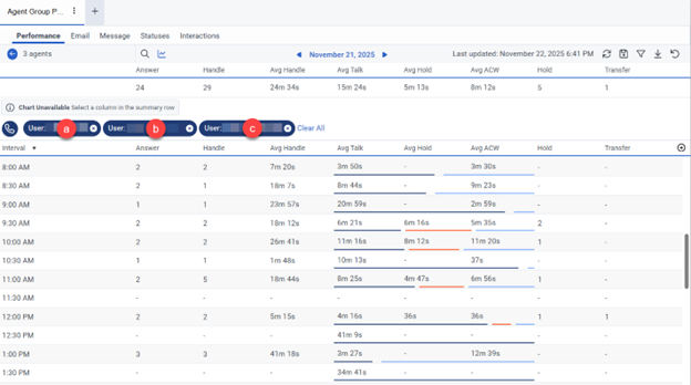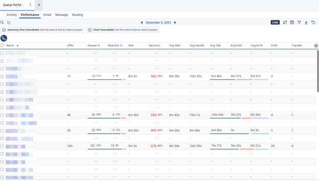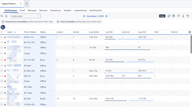This section describes general navigation in these views. Sections 6.2 Viewing Agent Performance Statistics, 6.3 Viewing Agent Status, 6.4 Viewing Queue Activity, and 6.5 Viewing Queue Performance provide view-specific information.