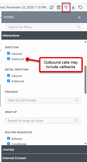 Click the filter button to open the filtering panel, and then select options to change the filtering defaults. Available filters vary by view.