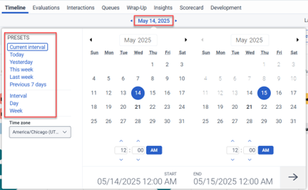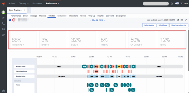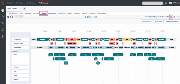 To show only specific data, customize the agent timeline detail view. For example, choose to view only certain metrics or filter to see certain types of interactions.