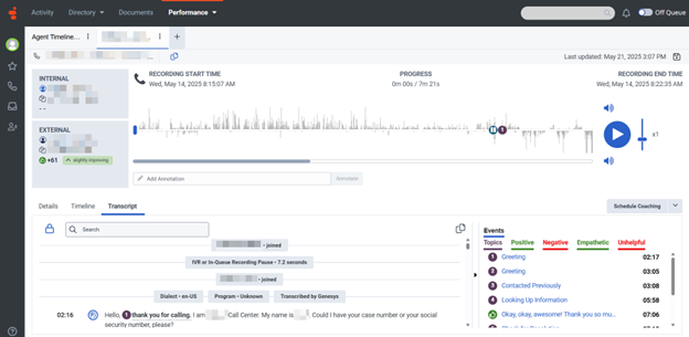 | Note | The start time, end time, and duration of the call shows the time the call entered and exited the call center. This does not reflect the time spent interacting with the agent. |