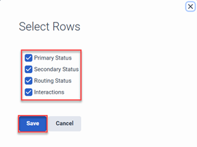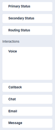 By default, this view provides details about primary status, secondary status, routing status, and various interactions such as voice, callback, chat, email, and message.
