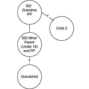 Three-generation case. Grandma is not receiving SSI; the minor parent is. The minor parent is requesting CTS. Explanation The grandchild is the target child. The minor parent and grandchild will comprise the SFU. CARES Processing The minor parent must be coded as caring for the grandchild. CTS Benefits The CTS benefit will be added to the minor parent's SSI state check in the amount of $250. |